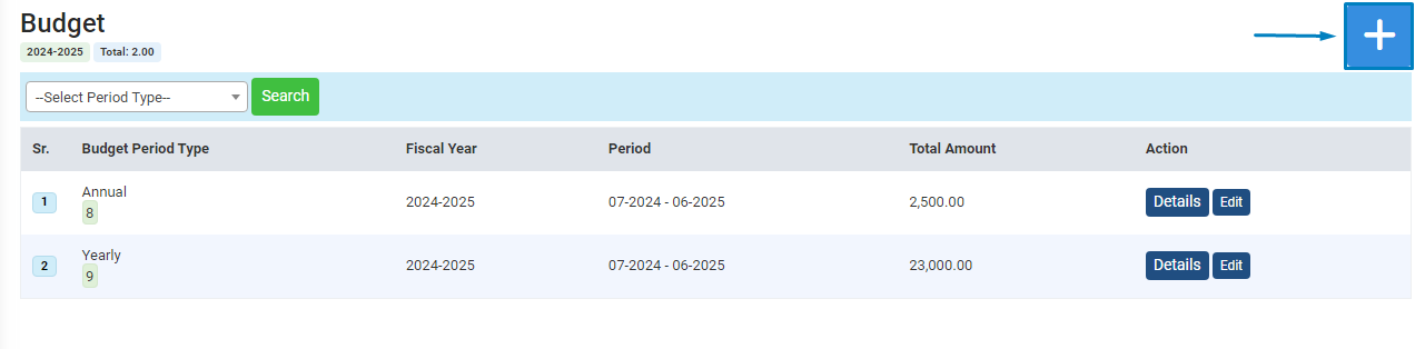 After clicking "Budget," this page will appear. Click the plus button to create a new budget.