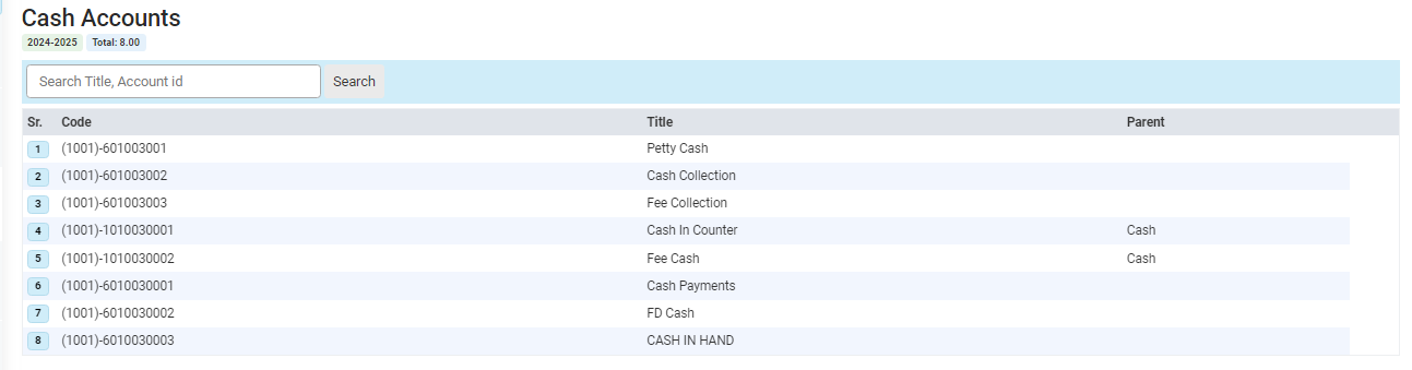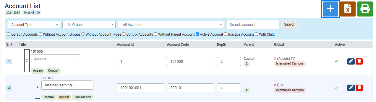 After clicking on "Account List," the page will appear on your screen. To add a cash account, click the plus button, and an account popup will appear.